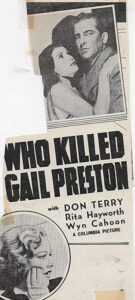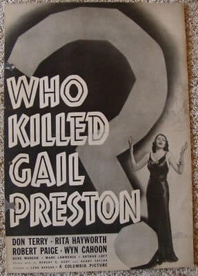 Το “Who Killed Gail Preston?” είναι μια αμερικανική αστυνομική ταινία του 1938, σε σκηνοθεσία Leon Barsha και με πρωταγωνιστές τους Don Terry, Rita Hayworth και Robert Paige. Η φωνή της Hayworth στο τραγούδι ντουμπλαρίστηκε από την Gloria Franklin. Η Rita Hayworth είναι το δεύτερο όνομα στους τίτλους, αν και εμφανίστηκε μόνο για 20 λεπτά στην ταινία. Κυκλοφόρησε στις 24/02/1938.