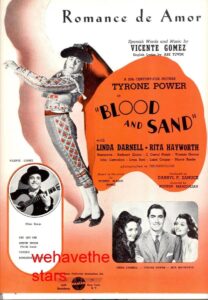 Το “Blood and Sand” είναι μια αμερικανική δραματική ταινία Technicolor του 1941, με πρωταγωνιστές τους Tyrone Power, Linda Darnell, Rita Hayworth και Nazimova. Σε σκηνοθεσία Rouben Mamoulian, παραγωγή της 20th Century Fox και βασισμένη στο ισπανικό μυθιστόρημα “Blood and Sand” (“Sangre y arena”) του 1908 του Vicente Blasco Ibanez. Σε δεύτερους ρόλους συμμετέχουν οι Anthony Quinn, Lynn Bari, Laird Cregar, J. Carrol Naish, John Carradine και George Reeves. Στο τραγούδι η φωνή της Rita Hayworth ντουμπλάρεται από τη Mercedes Ruffino. Η ταινία κέρδισε Όσκαρ Καλύτερης Φωτογραφίας. Ήταν επίσης υποψήφια για Καλύτερη Καλλιτεχνική Διεύθυνση (Richard Day, Joseph C. Wright και Thomas Little).