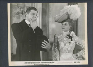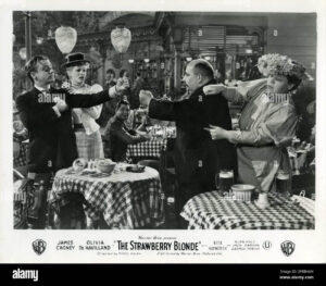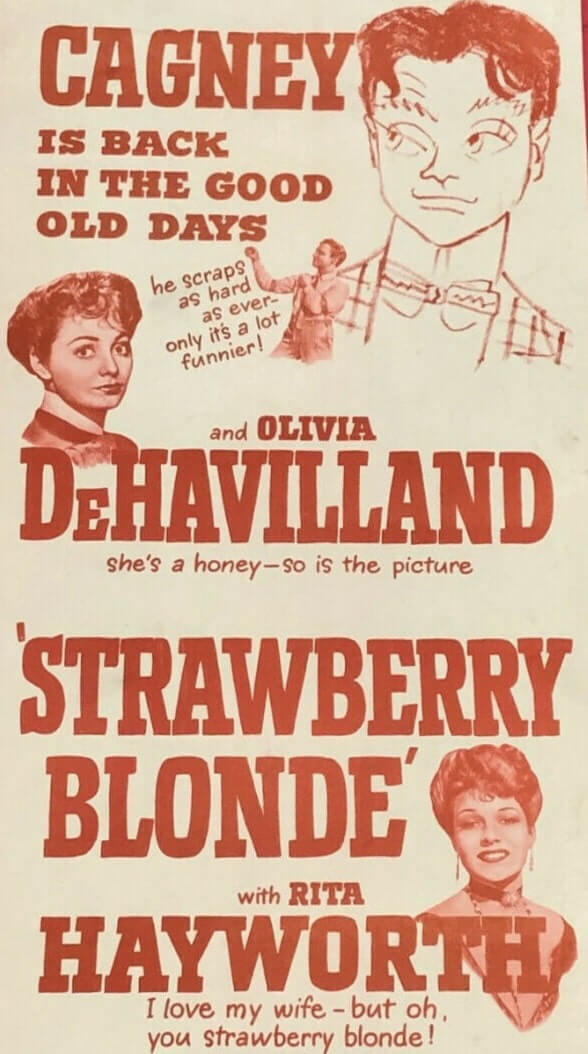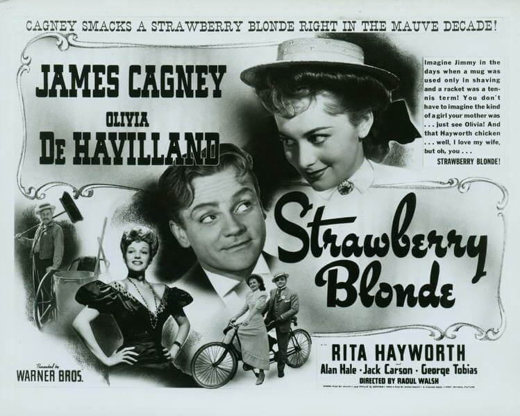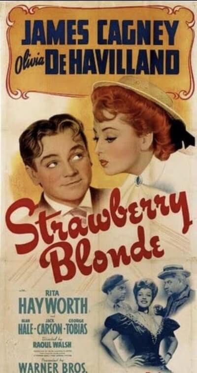 Το “The Strawberry Blonde” είναι μια αμερικανική ρομαντική κωμωδία του 1941, σε σκηνοθεσία του Raoul Walsh, με πρωταγωνιστές τους James Cagney και Olivia de Havilland, αλλά και με τους Rita Hayworth, Alan Hale, Jack Carson και George Tobias. Η τοποθεσία είναι η Νέα Υόρκη, γύρω στο 1900, και περιλαμβάνει τραγούδια εκείνης της εποχής, όπως “The Band Played On”, “Bill Bailey”, “Meet Me in St. Louis, Louie”, “Wait Till The Sun Shines Nellie” και “Love Me and the World Is Mine”. Προτάθηκε για Όσκαρ το 1941 για την Καλύτερη Μουσική Ταινία. Ο τίτλος αναφέρεται πιο συχνά ξεκινώντας με τη λέξη The (όπως εμφανίζεται στους τίτλους έναρξης), αλλά οι αφίσες και το διαφημιστικό υλικό της ταινίας την ανέγραφαν απλά ως “Strawberry Blonde”. Κυκλογφόρησε στις 21/02/1941.